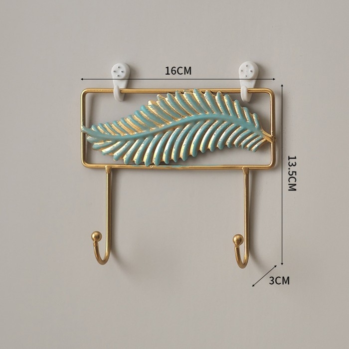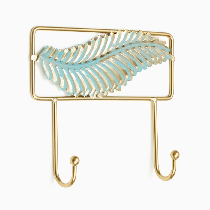 Обладают всеми необходимыми качествами для удобного хранения одежды и аксессуаров. На вешалке можно разместить головные уборы, шарфы или свои любимые предметы. Удобное дополнение, которое поможет вам организовать пространство и добавить характер вашему интерьеру. Каркас изготовлен из металла, что делает фурнитуру долговечной и прочной, способной выдерживать значительную нагрузку. Настенная вешалка имеет красивые вставки в виде пёрышка. Покрашена в элегантный золотой цвет с добавлением бирюзового.