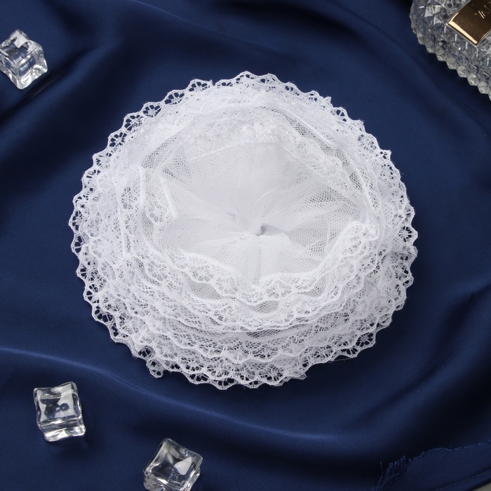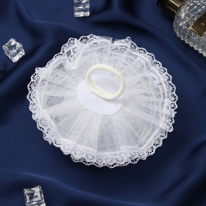 Резинка для волос бант "Школьница" волна кружева, 16 см, белый