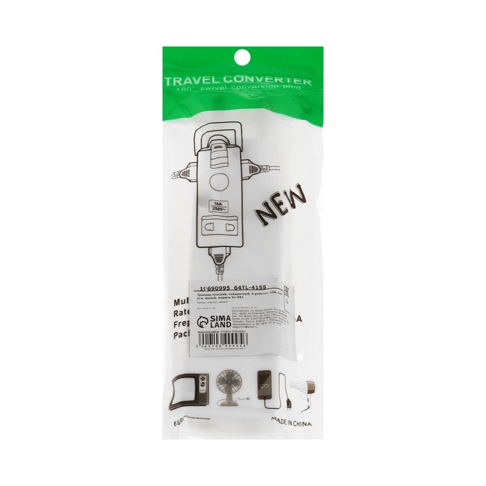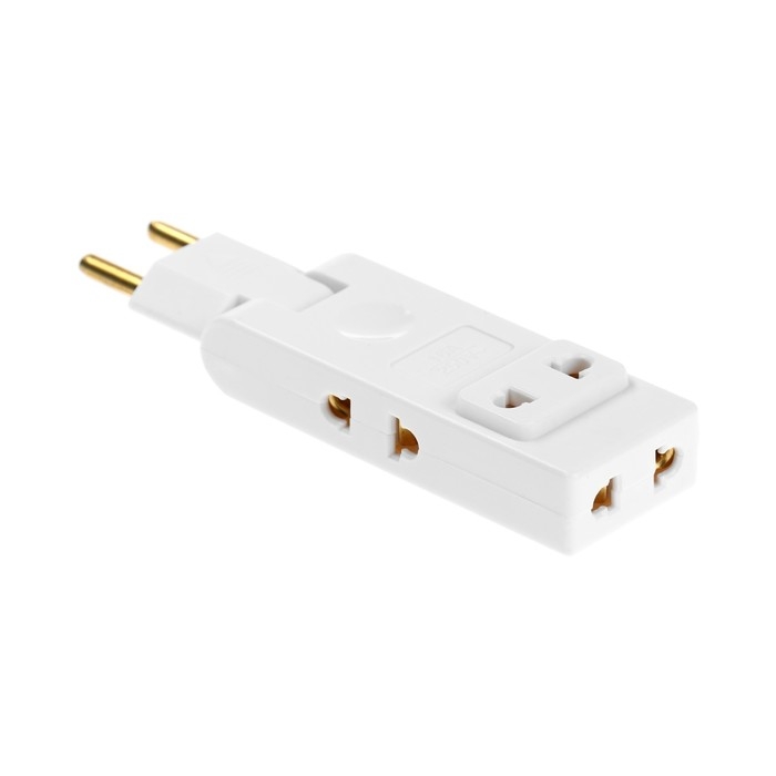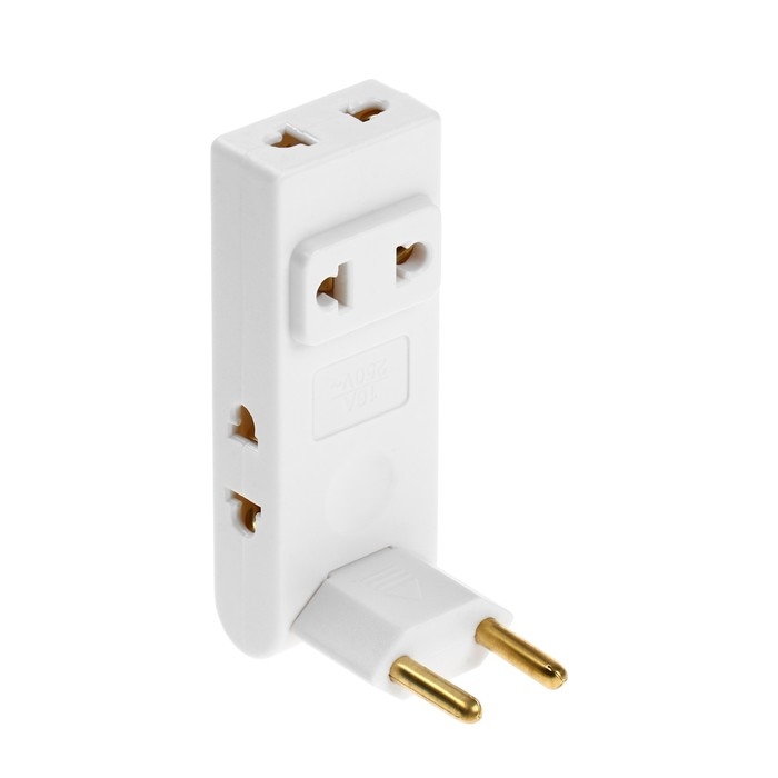 Тройник плоский, поворотный, 4 розетки, 10А, без з/к, белый