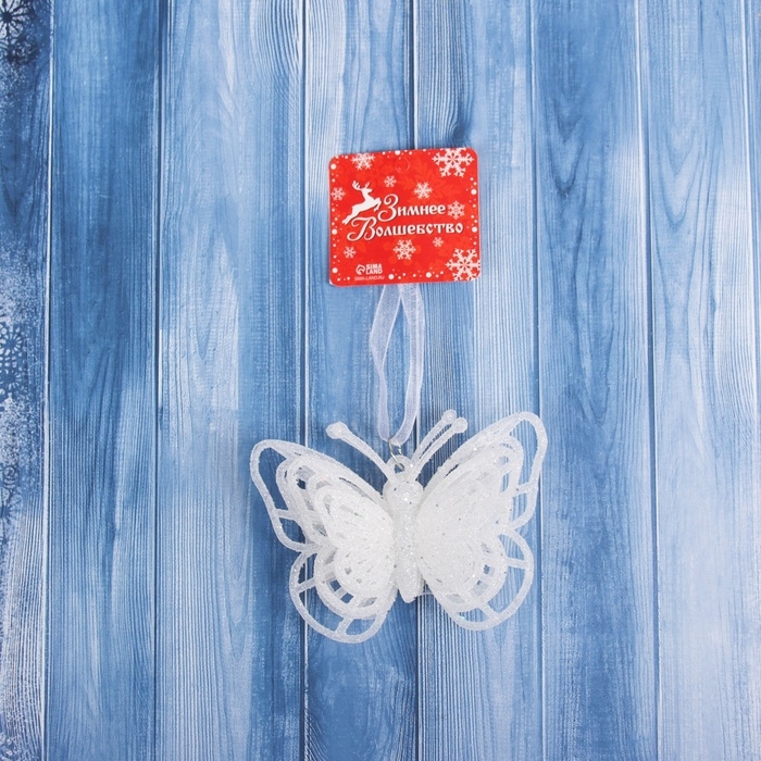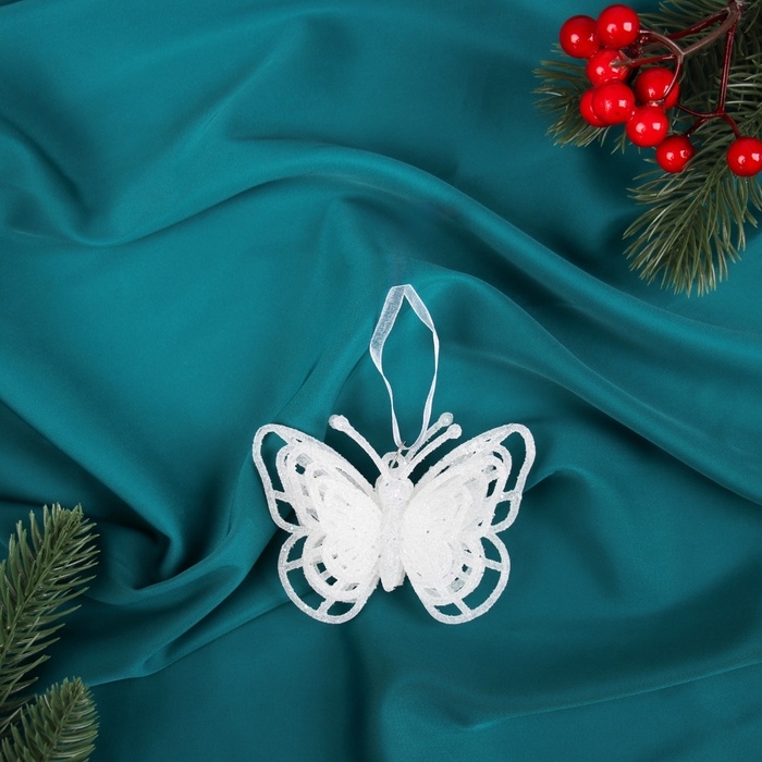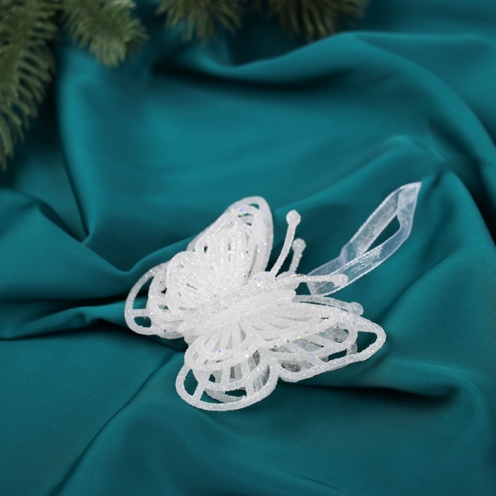 Украшение ёлочное "Бабочка перелив" 8х7 см, белый