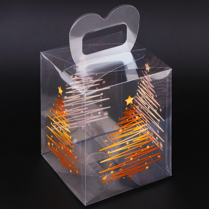 Новый год. Коробка подарочная новогодняя складная ПВХ "Ёлочка" 12 х 12 х 15 см.