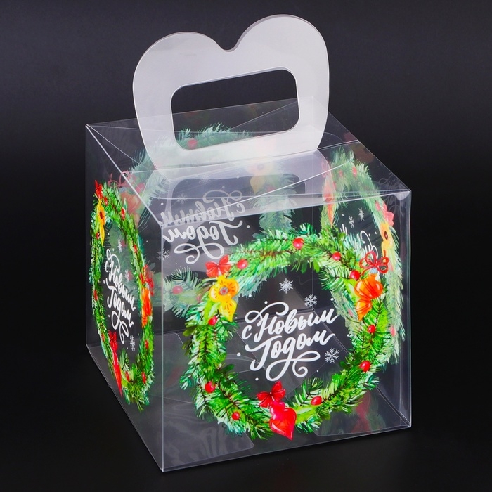 Новый год. Коробка подарочная новогодняя складная ПВХ "С Новым годом" 12 х 12 х 12 см.
