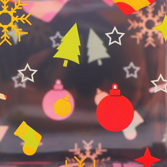Новый год. Коробка подарочная новогодняя складная ПВХ "Новогодние украшения" 11 х 11 х 11 см.