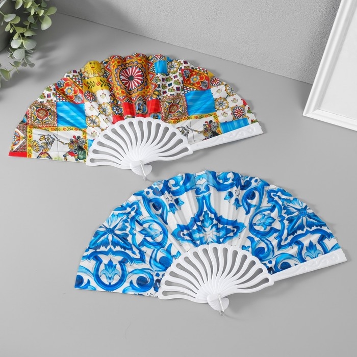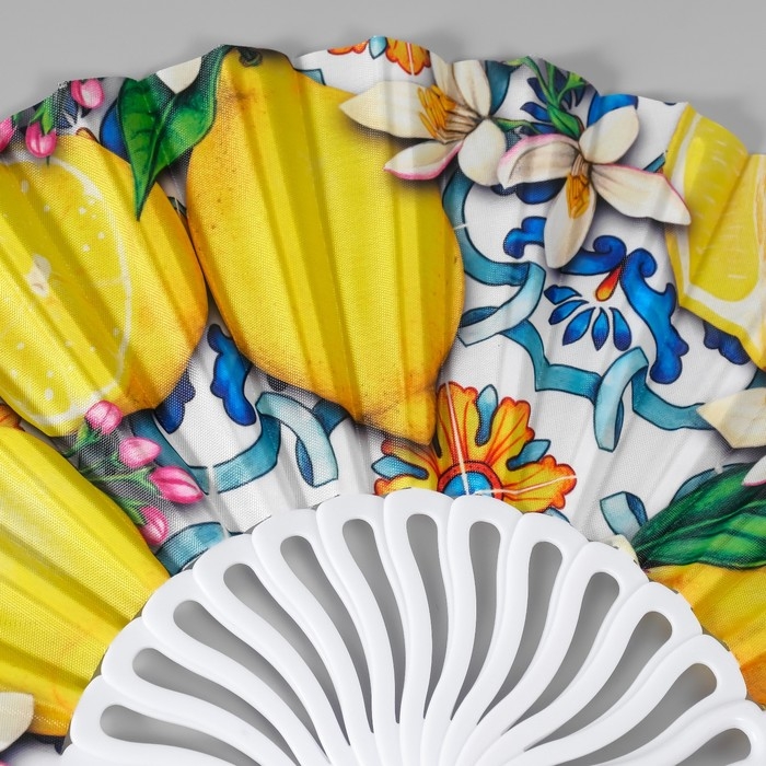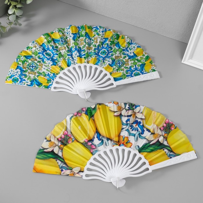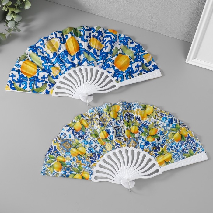 Веер пластик, текстиль "Лимонный орнамент" МИКС 23 см