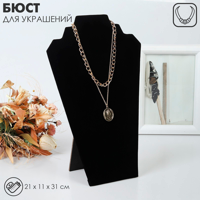 Бюст для украшений, 21×11×31 см, h=31 см, цвет чёрный