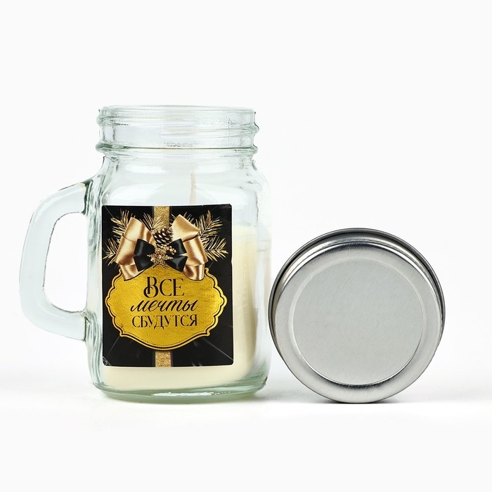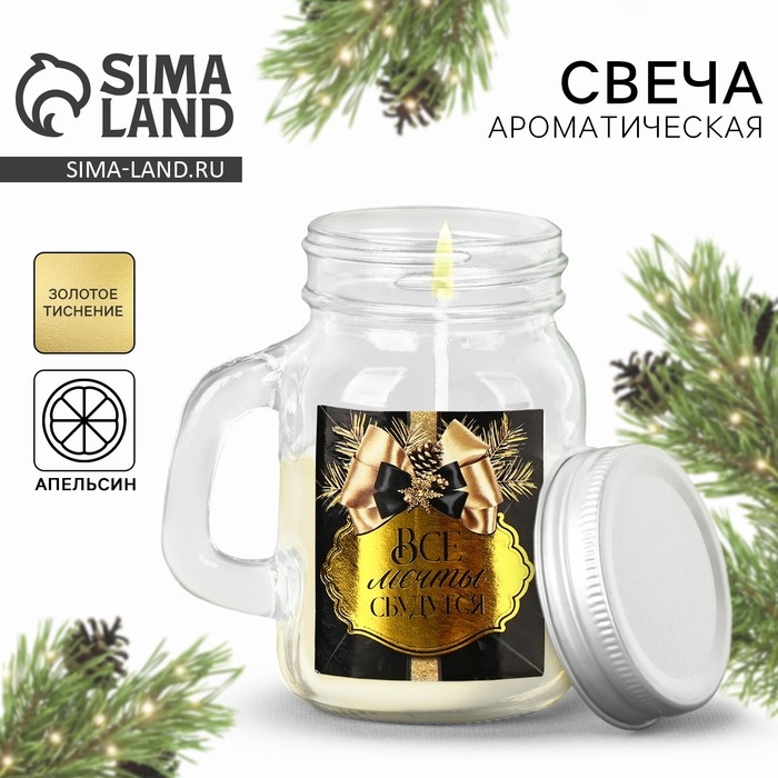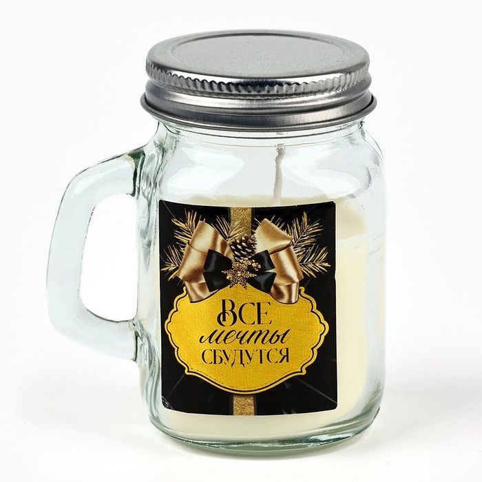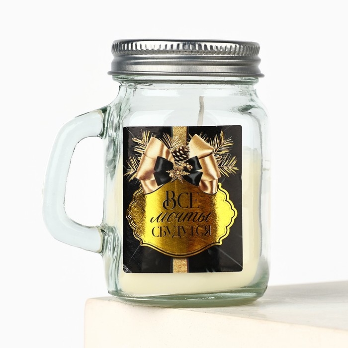 Новогодняя свеча в баночке с ручкой «Новый год: Все мечты сбудутся», аромат апельсин, 7 х 8,5 х 5 см
