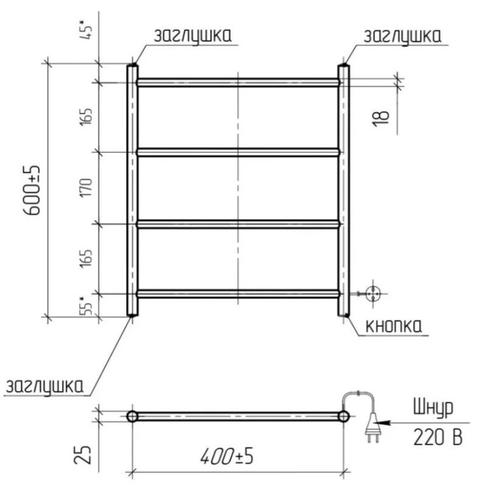Полотенцесушитель электрический ТЕРА "Классика", 400х600 мм, 4 перекладины