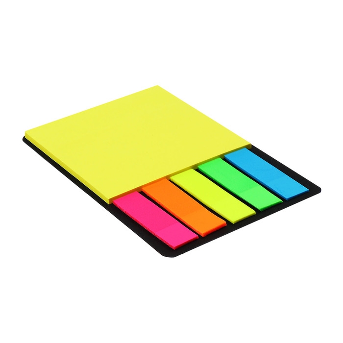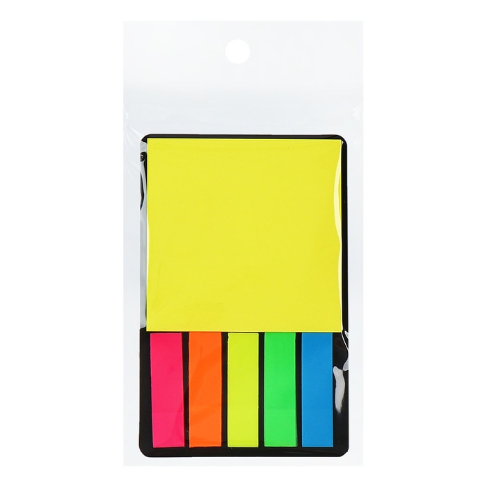 Набор Блок-закладки с липким краем пластик 20л*5 цветов флуор, 45*12мм, блок 30л, 76*76 мм 1053067