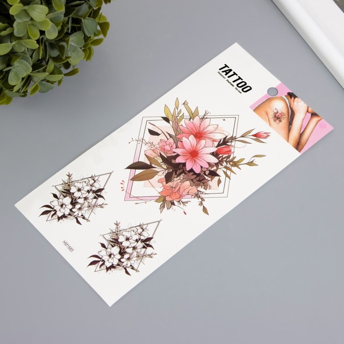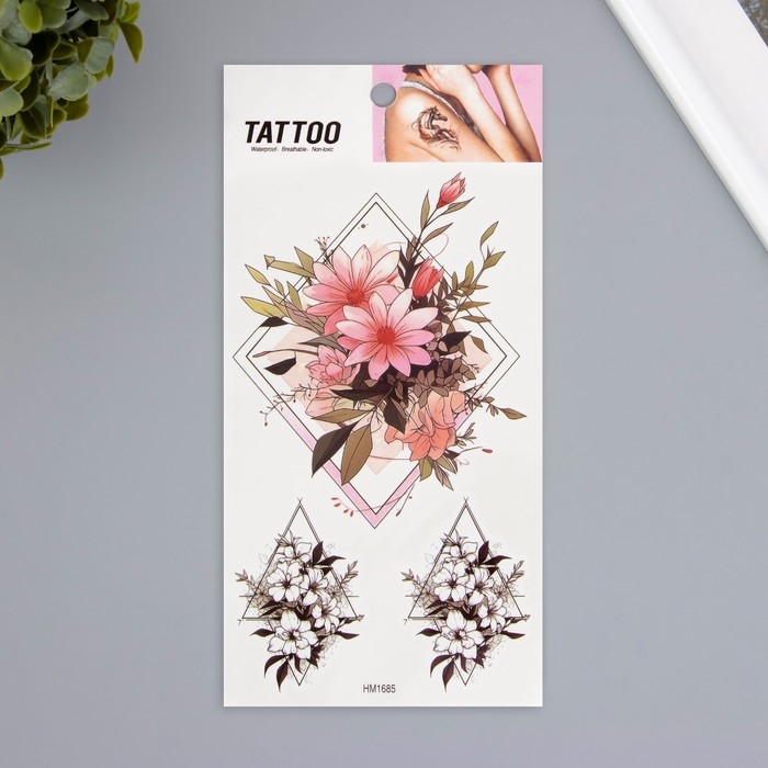 Татуировка на тело цветная "Цветы в геометрии" 10х20,5 см