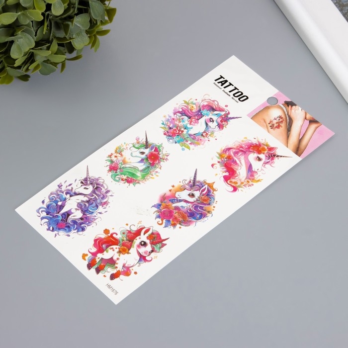 Татуировка на тело цветная "Единорог с цветами" 10х20,5 см