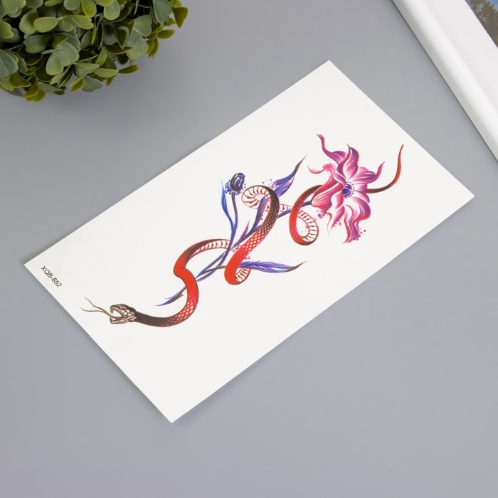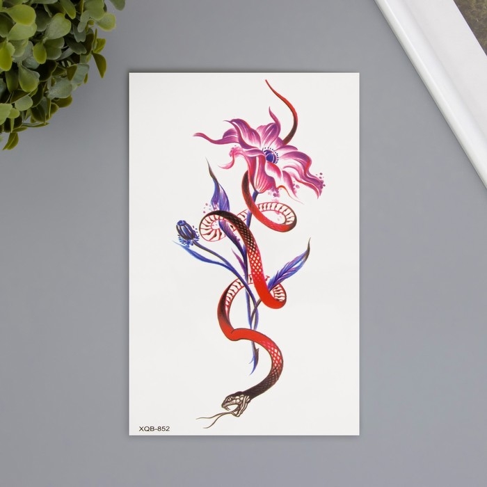 Татуировка на тело цветная "Змеиная лилия" 11,4х21 см