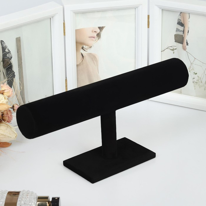 Подставка для часов, браслетов, флок, 30×7,5×15,5 см, d=5 см, цвет чёрный