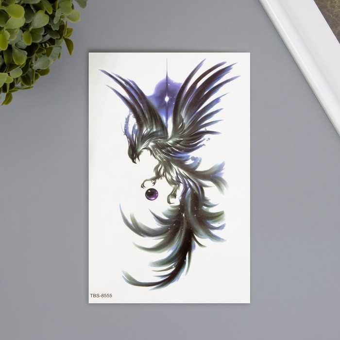 Татуировка на тело цветная "Лунный феникс" 12х19 см
