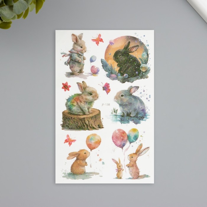 Татуировка на тело фосфорные с блёстками "Кролик" 7,5х12 см