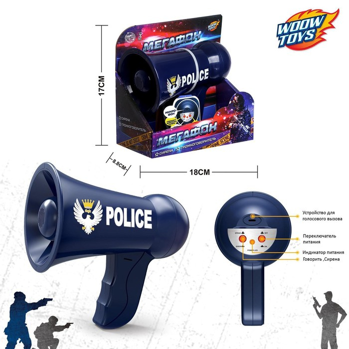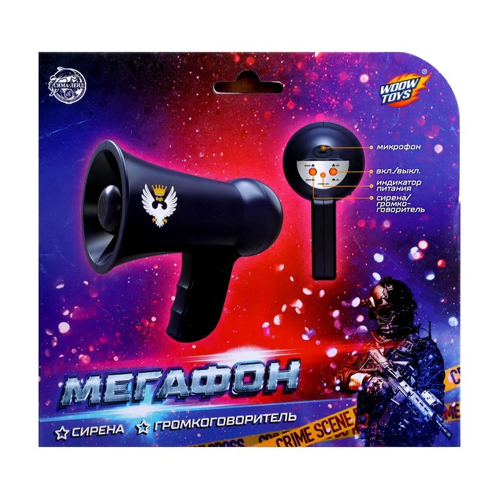 Мегафон «Полицейский», 2 режима: сирена, громкоговоритель, работает от батареек