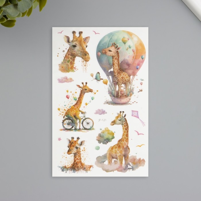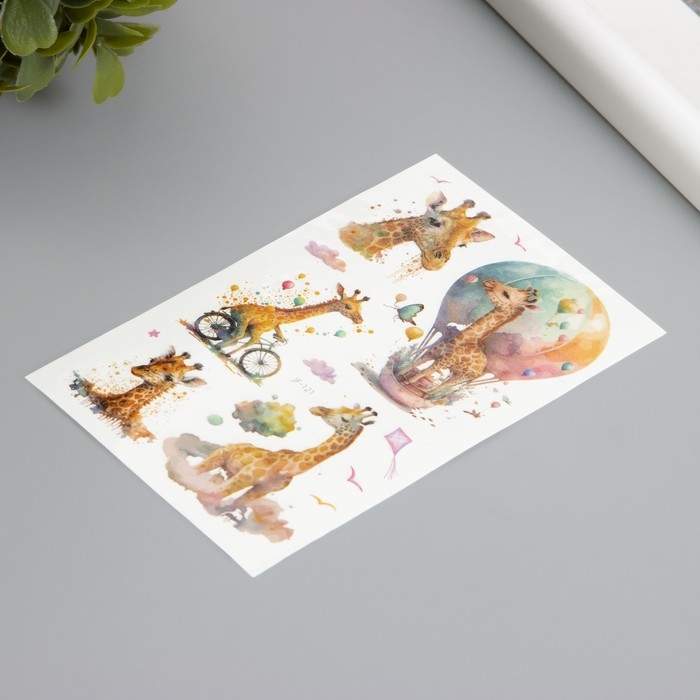 Татуировка на тело фосфорные с блёстками "Жираф" 7,5х12 см