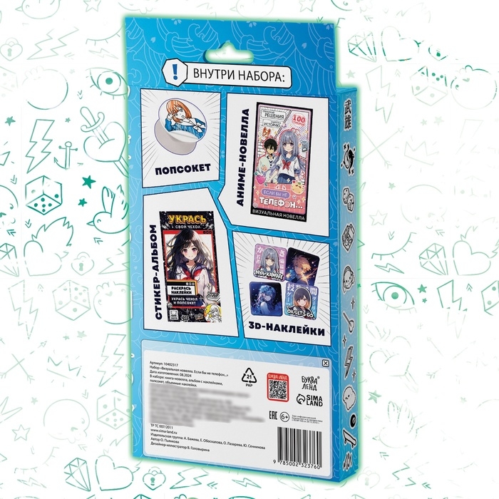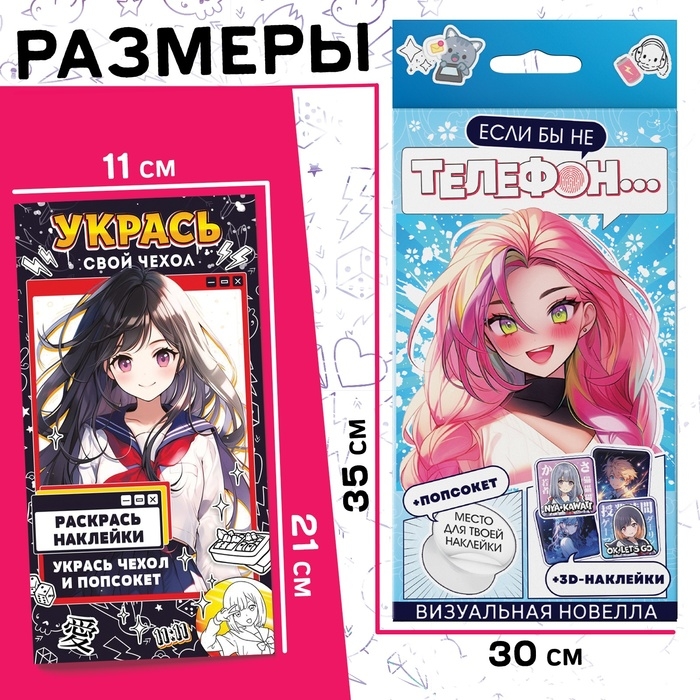 Набор «Визуальная новелла. Если бы не телефон...», более 100 наклеек, с попсокетом