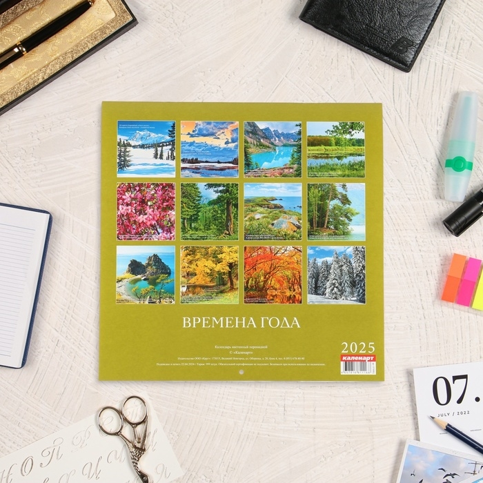 Календарь перекидной на скрепке "Времена года" 2025 год, 12 листов, 29х29 см
