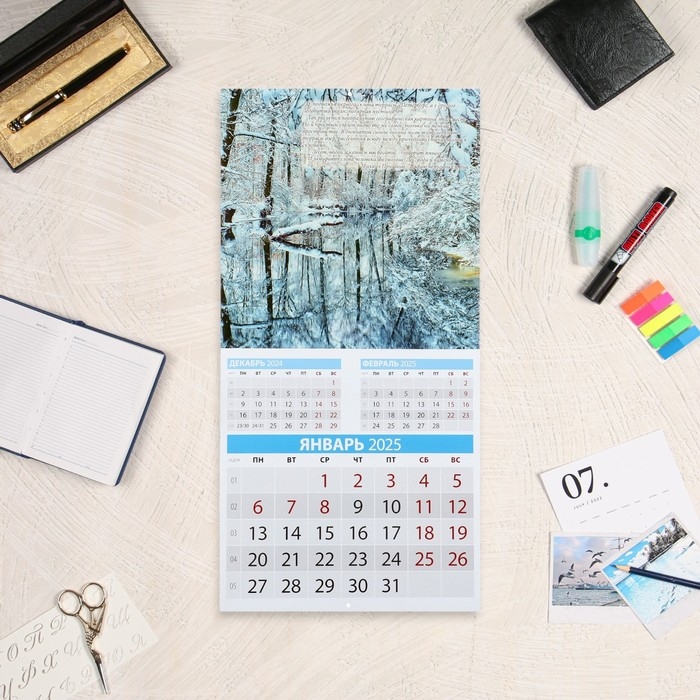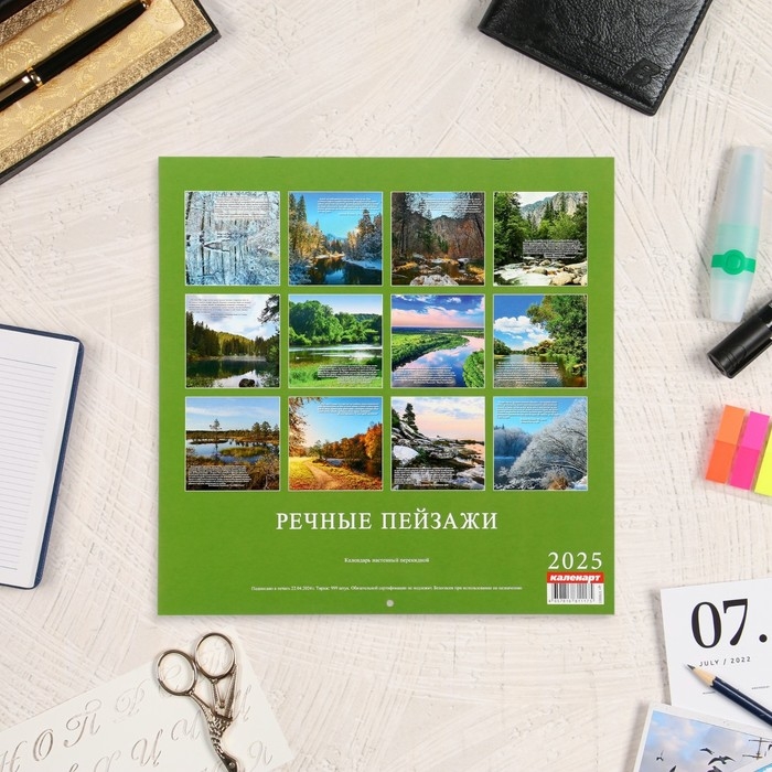 Календарь перекидной на скрепке "Речные пейзажи " 2025 год, 12 листов, 29х29 см
