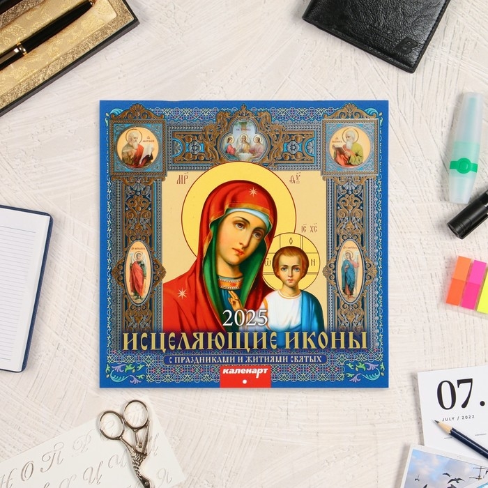 Календарь перекидной на скрепке "Исцеляющие иконы" 2025 год, 12 листов, 29х29 см
