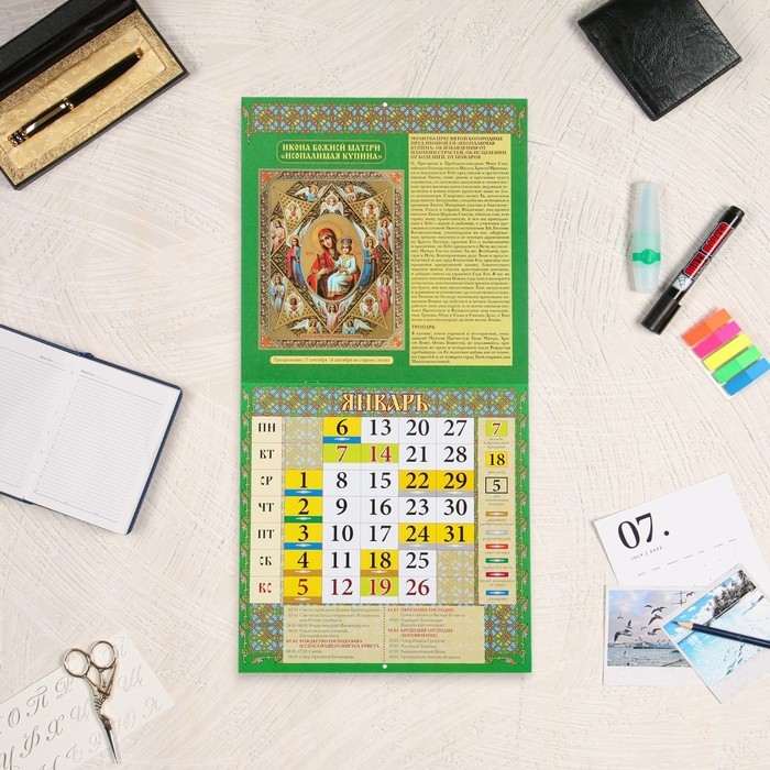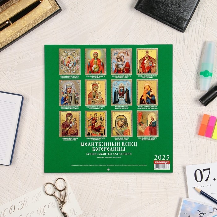 Календарь перекидной на скрепке "Молитвенный венец Богородицы" 2025 год, 12 листов, 29х29 см 1062029