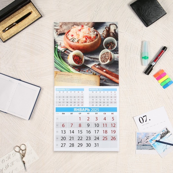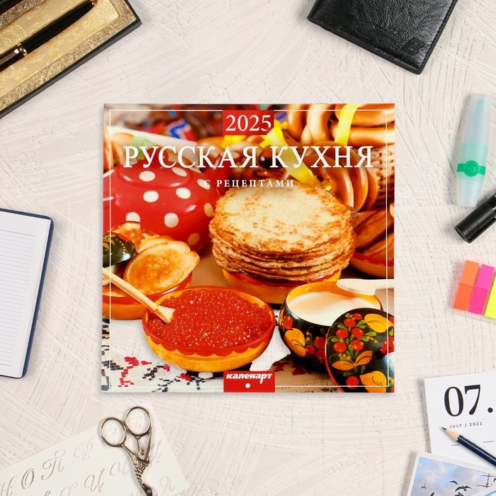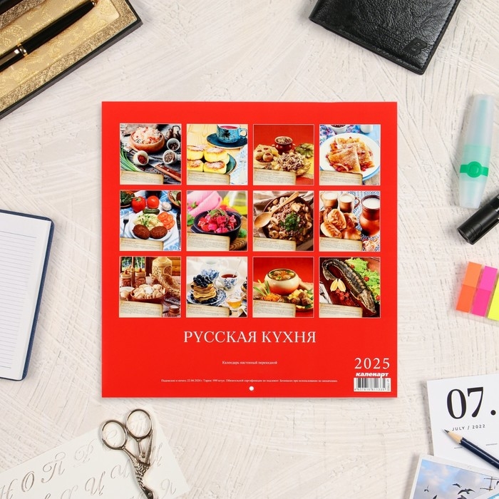 Календарь перекидной на скрепке "Русская кухня с рецептами " 2025 год, 12 листов, 29х29 см