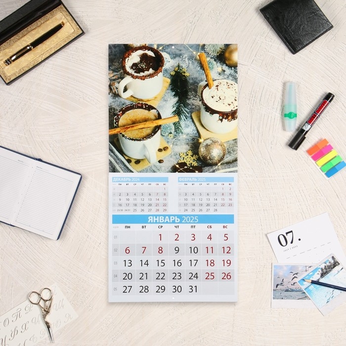 Календарь перекидной на скрепке "Чай, кофе, шоколад" 2025 год, 12 листов, 29х29 см