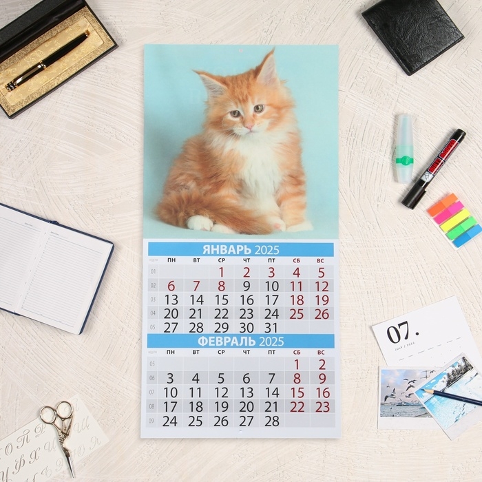 Календарь перекидной на скрепке "Весёлые котята" 2025 год, 6 листов, 29х29 см