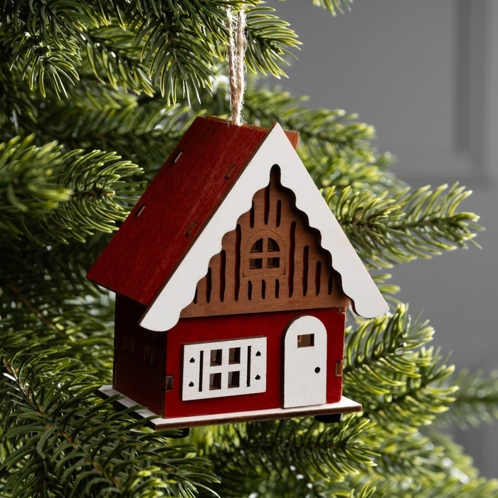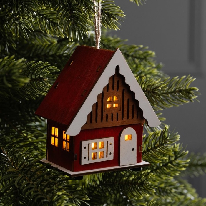 Подвеска световая "Красный домик", 9.5х5.5х10 см, 1 LED, AG10x3 (в компл.), свечение тёплое белое