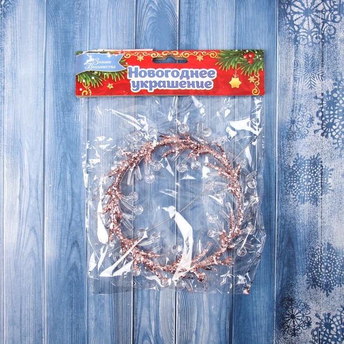 Украшение ёлочное "Венок сияние" 14х14 см, прозрачно-розовый