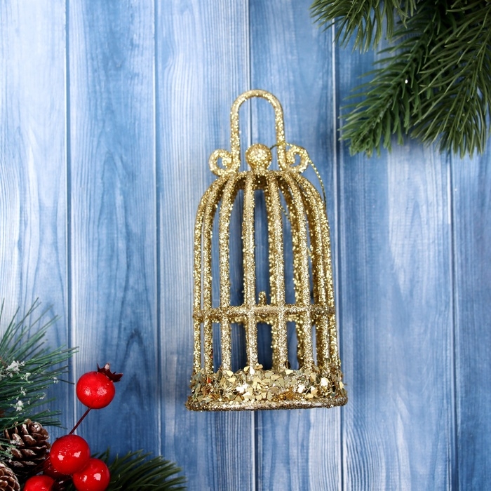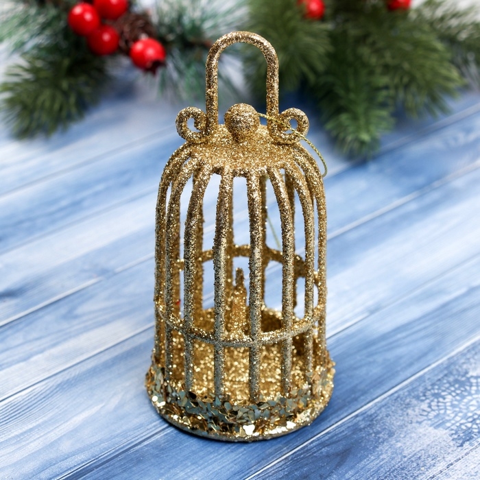 Украшение ёлочное "Клетка блеск" 12,5х6,5 см, золото