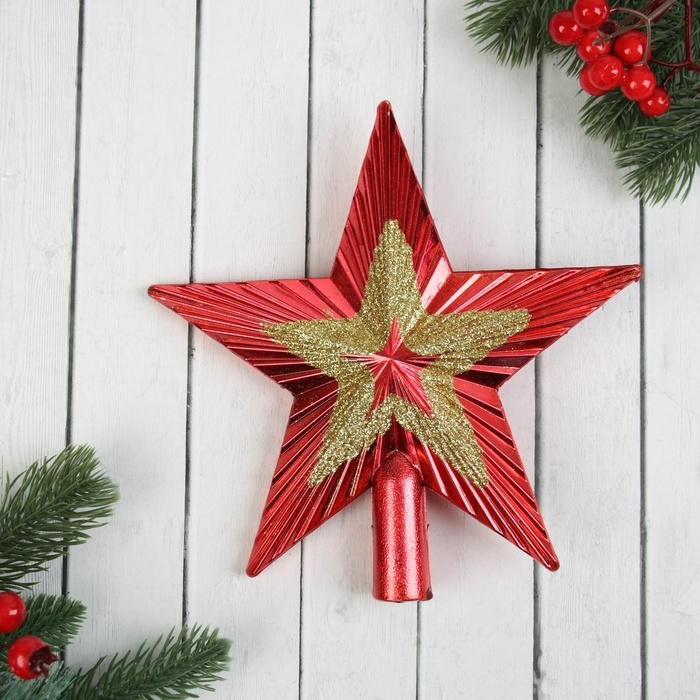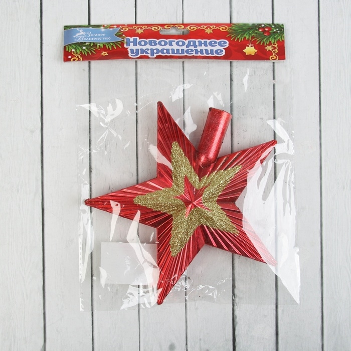 Наконечник "Звезда ребристая двойная" 19,5х19,5 см, красно-золотой
