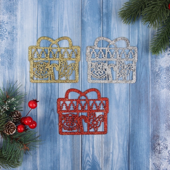 Украшение ёлочное "Подарок с конфетками" (набор 3 шт) 8х8,5 см, микс