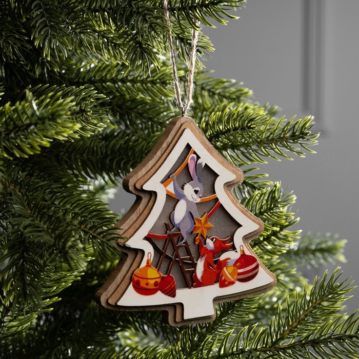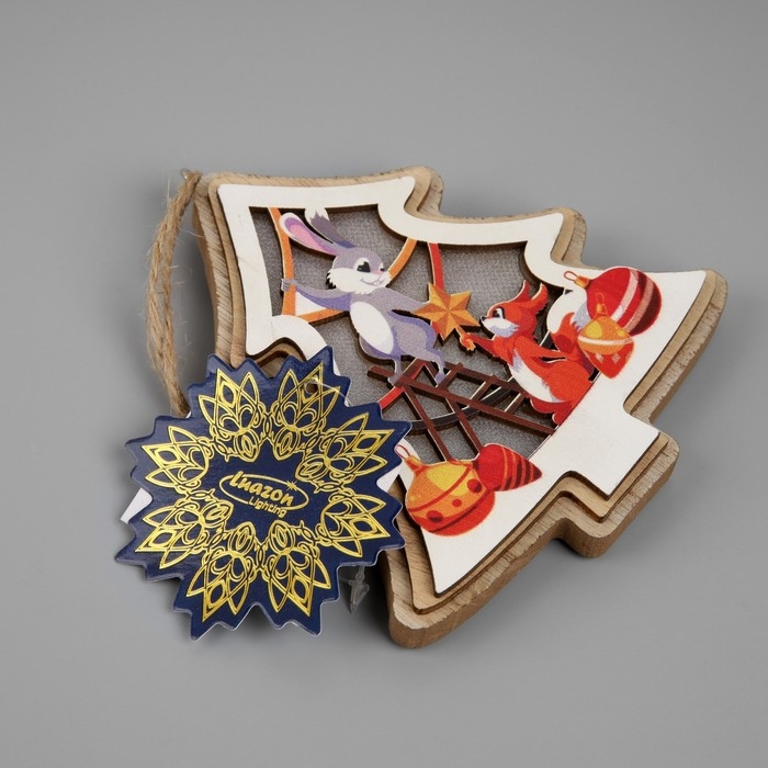 Подвеска световая "Зайка и белка", 11х12 см, LR41x3 (в компл.), свечение тёплое белое