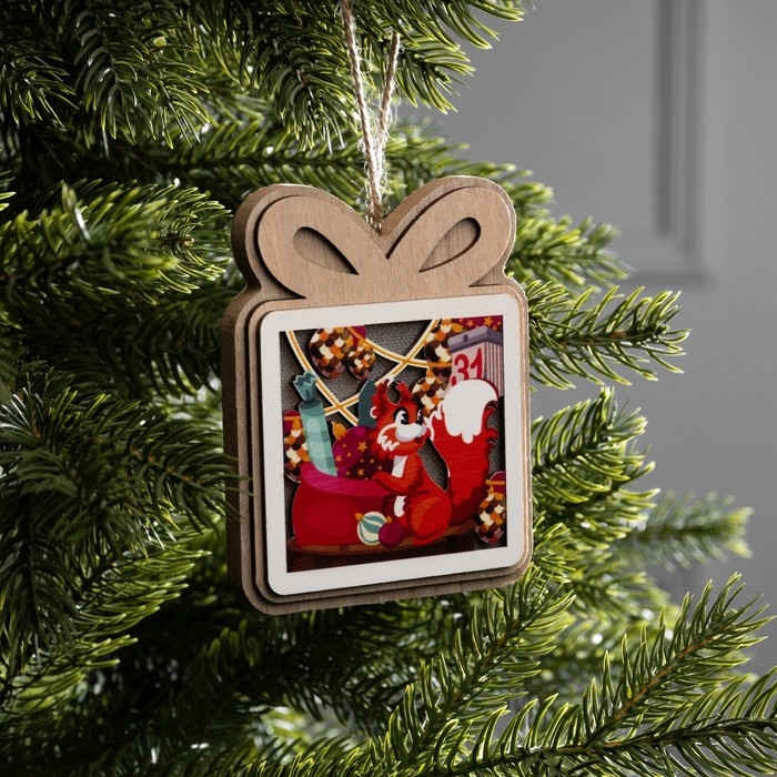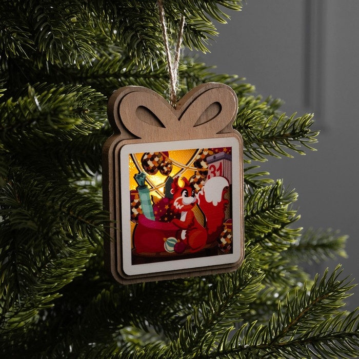 Подвеска световая "Белочка с подарками", 11х9 см, LR41x3 (в компл.), свечение тёплое белое