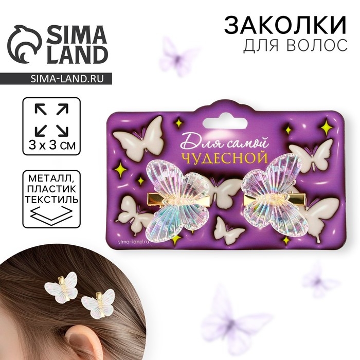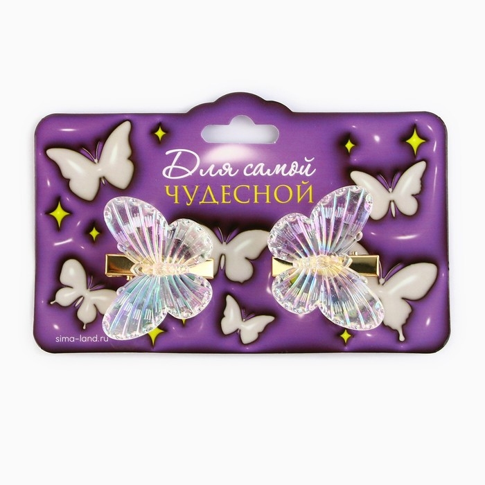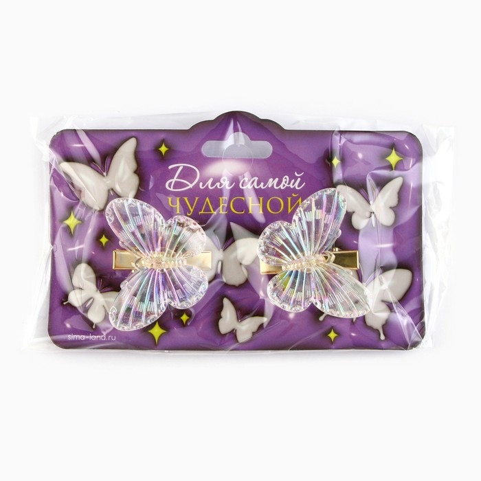 Заколки для волос с бабочками «Для самой чудесной», 3 х 3 см