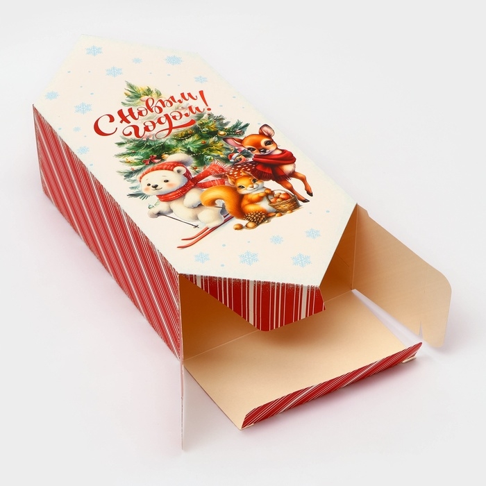 Новый год. Подарочная коробка - конфета новогодняя складная «Ёлочка и зверята», 18 х 28 х 10 см.