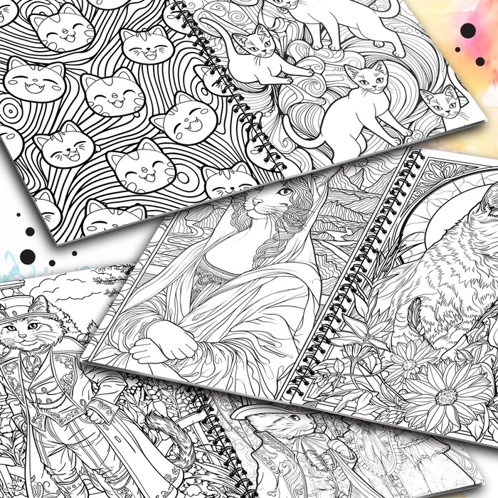 Релакс-раскраска «Кэтсбук», 100 картинок, формат А4