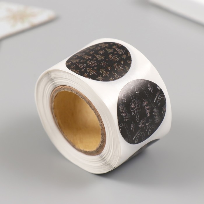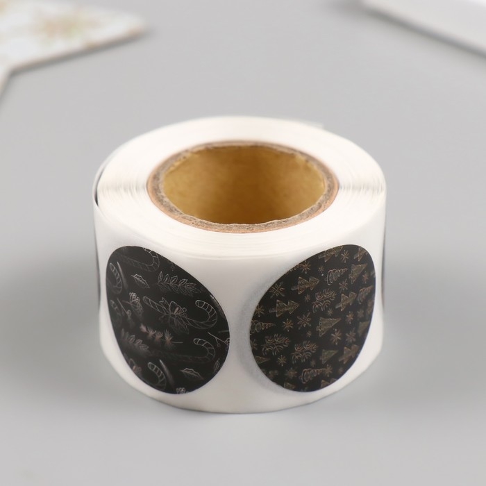 Наклейка бумага "Ёлочки и шишки" d=2,5 см 252 шт в рулоне