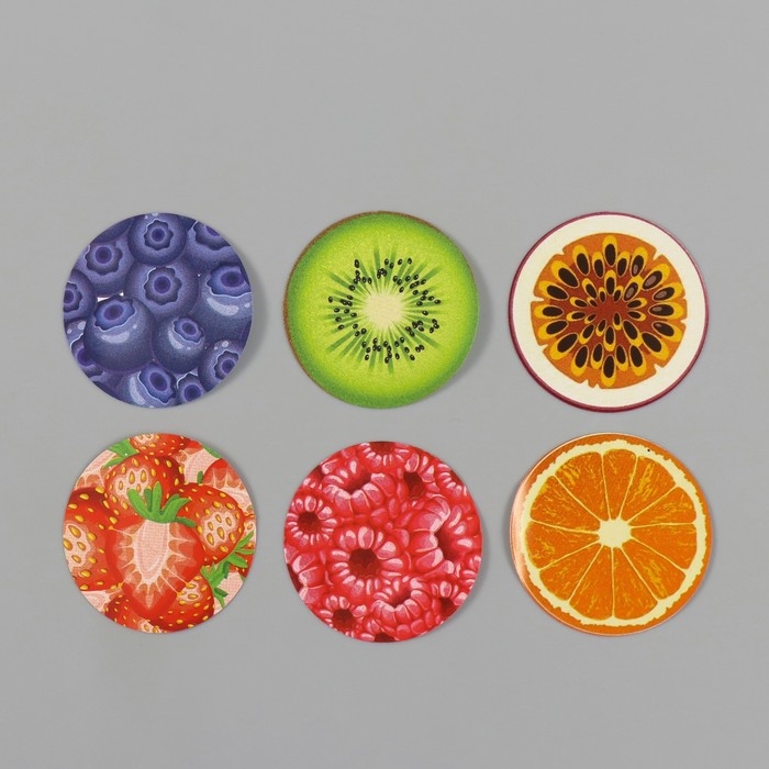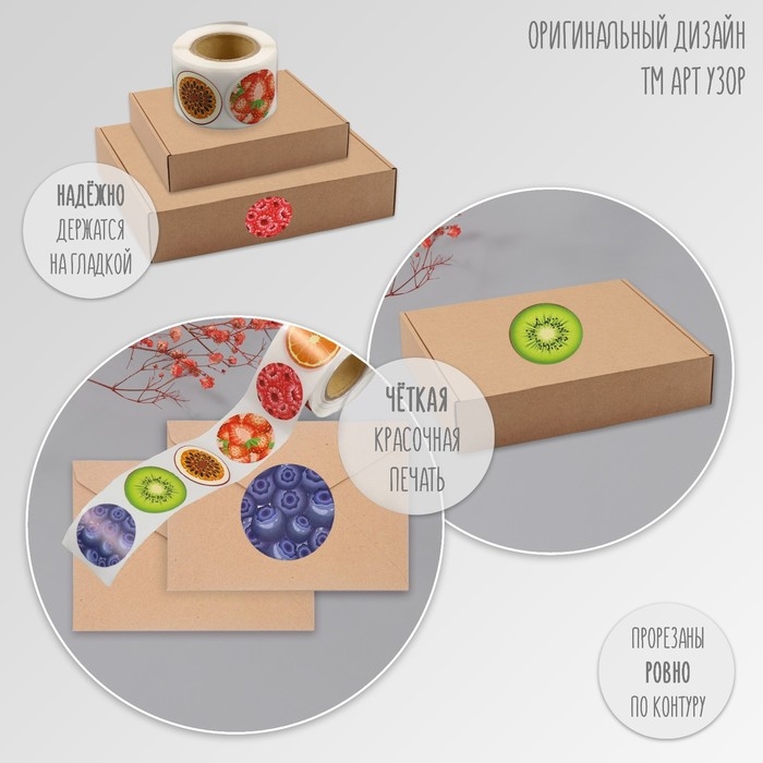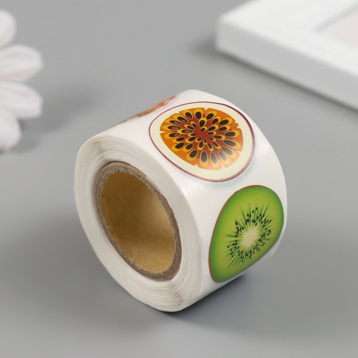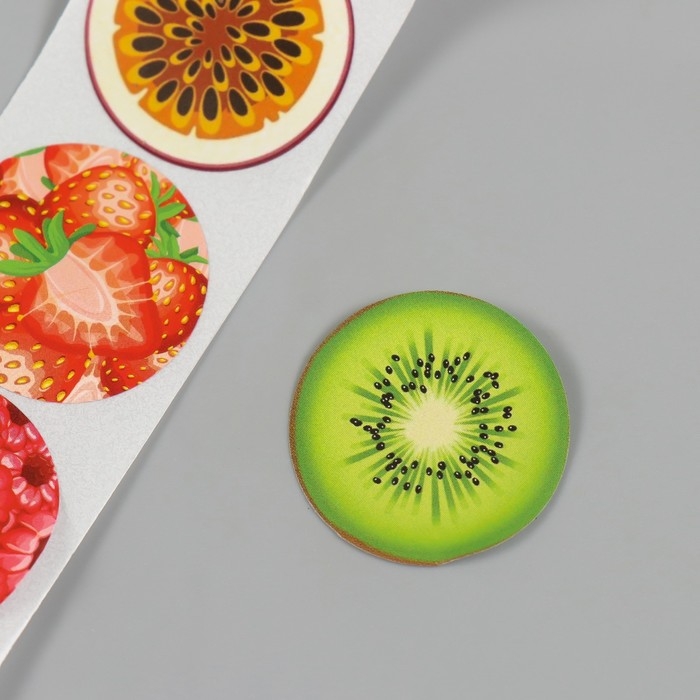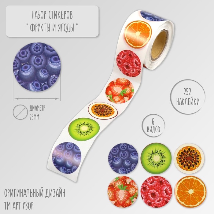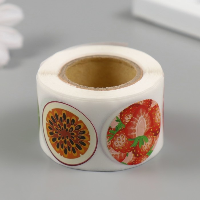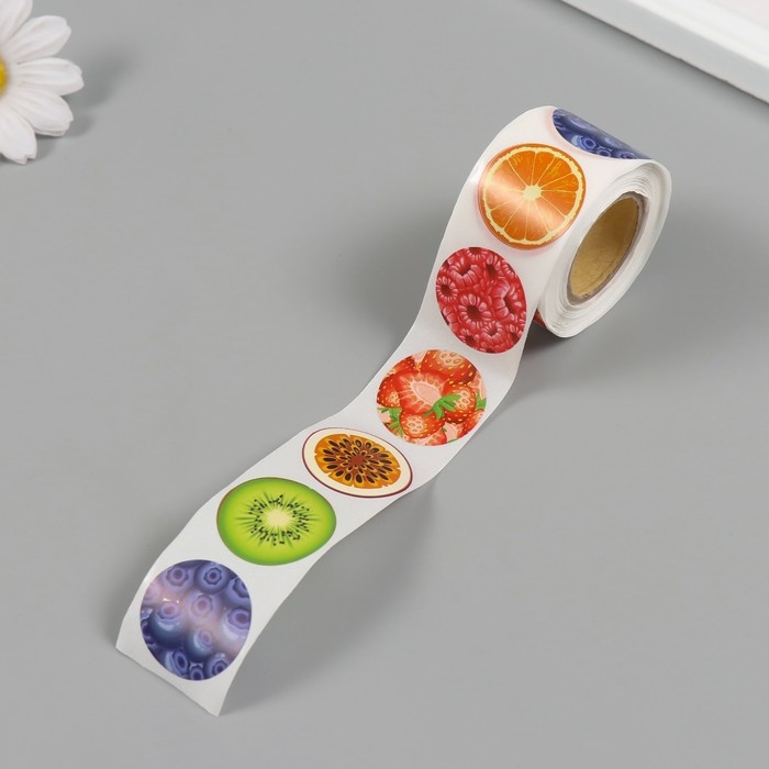 Наклейка бумага "Фрукты и ягоды" d=2,5 см 252 шт в рулоне