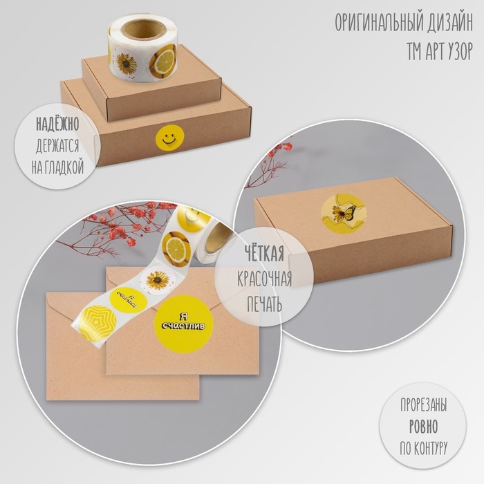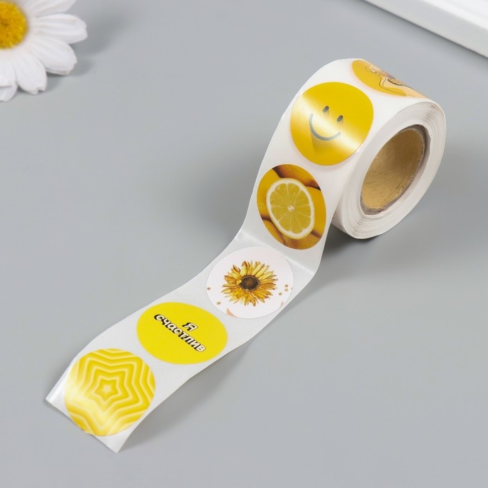 Наклейка бумага "Жёлтые" d=2,5 см 252 шт в рулоне
