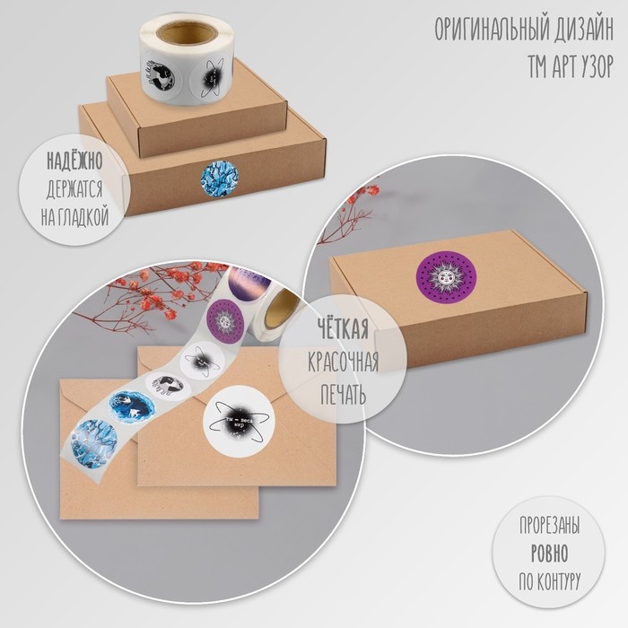 Наклейка бумага "Ты - весь мир" d=2,5 см 252 шт в рулоне