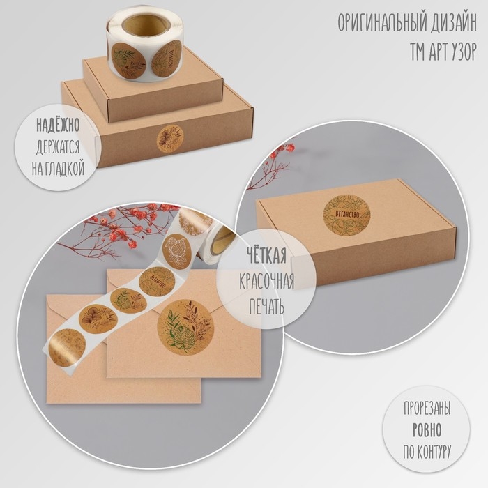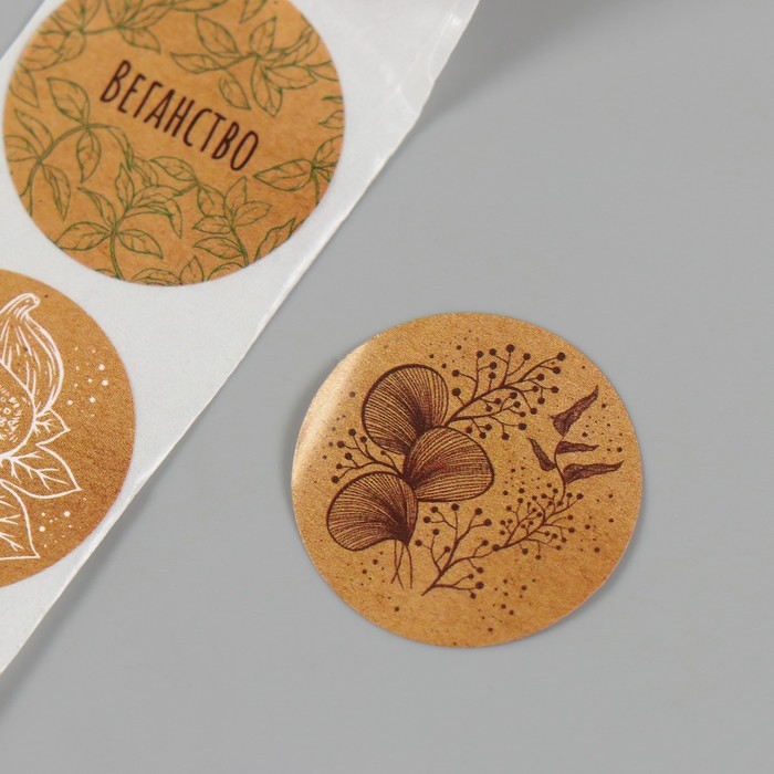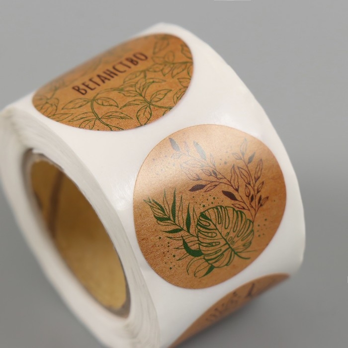 Наклейка бумага "Экология. Крафт" d=2,5 см 252 шт в рулоне