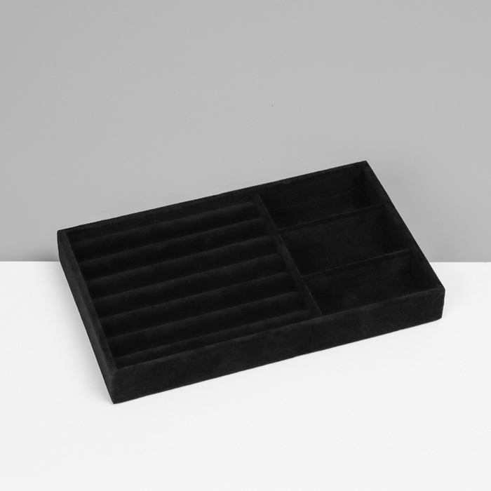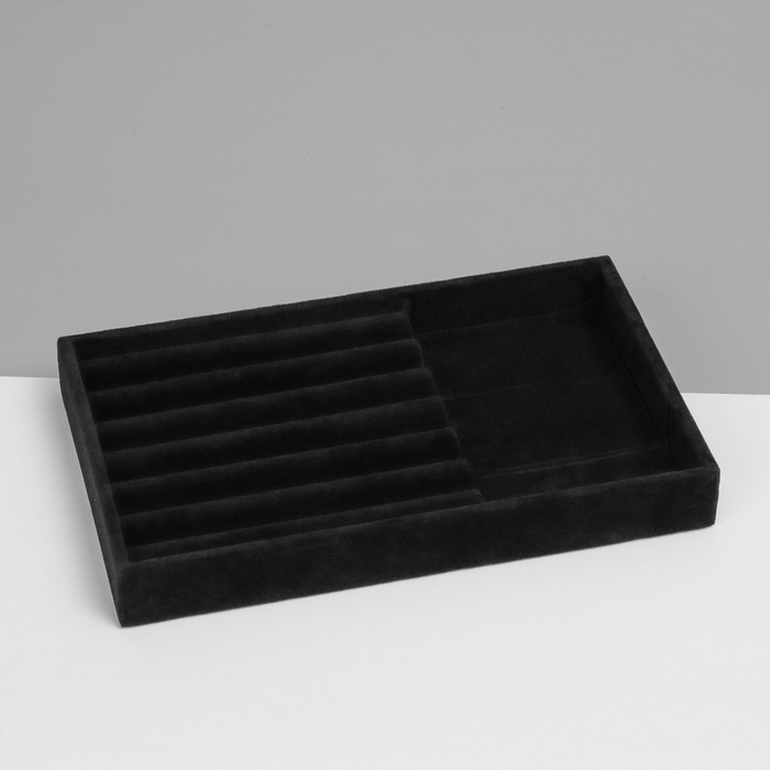 Подставка для украшения 3 ячейки и 7 полос для колец, флок, 21×12,3×2,5 см, цвет чёрный