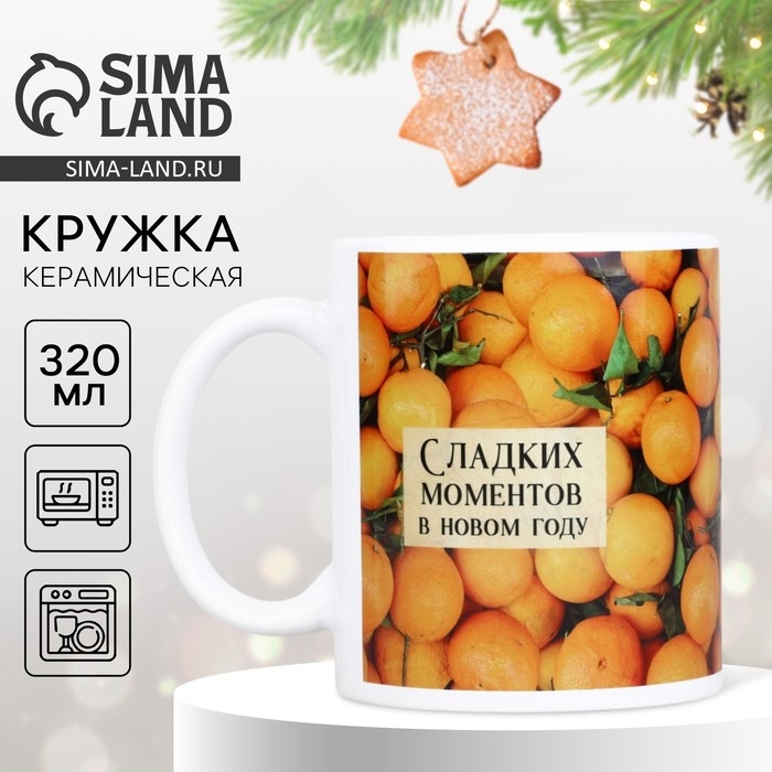 Новый год. Кружка белая керамическая «Мандарины», 320 мл