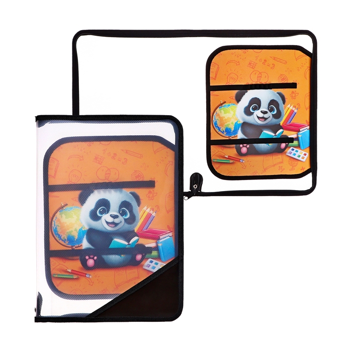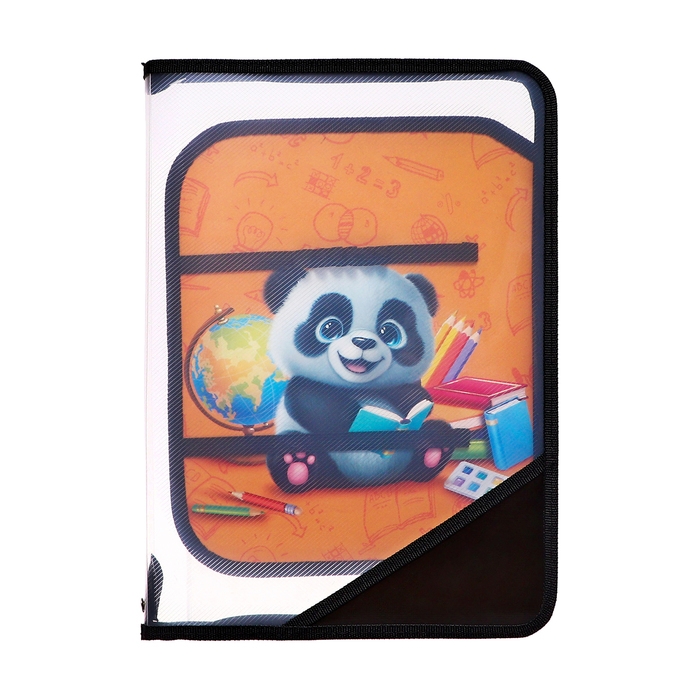 Папка для труда А4, 325 х 230 х 25 мм, молния вокруг, откидная планка, пластиковая, ПТР-1, Calligrata "Панда"