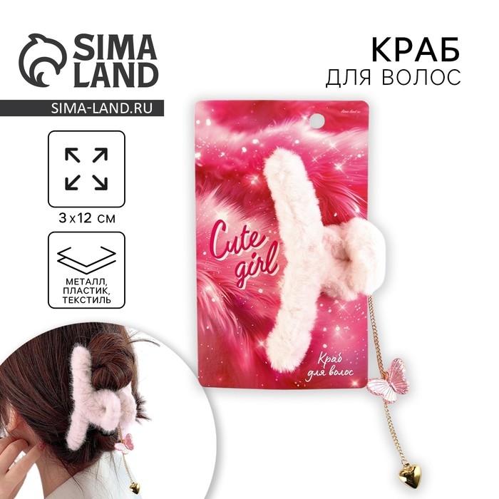 Краб для волос пушистый «Милая девочка» с подвеской, 3 х 12 см.