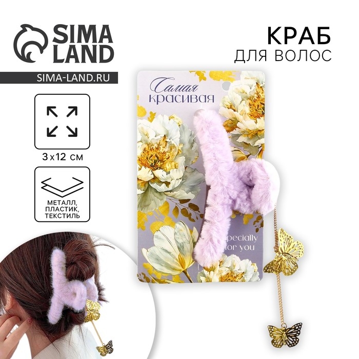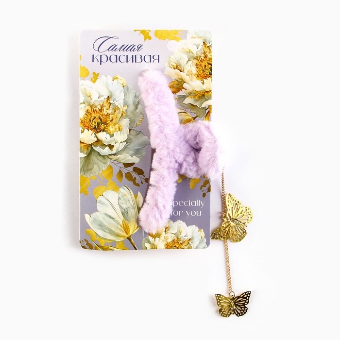 Краб для волос пушистый «Самая красивая» с подвеской, 3 х 12 см