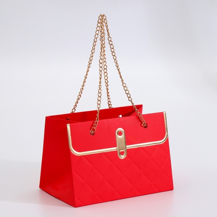 Пакет для цветов, ручка цепь, "Красный", с золотым тиснением, 15 х 10,5 х 10 см