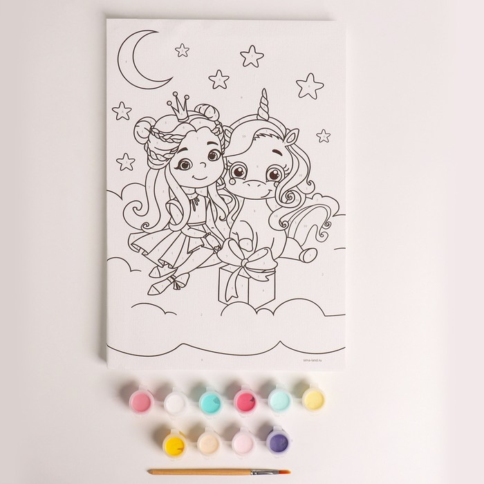 Картина по номерам для детей «Принцесса с единорогом», 20 х 30 см